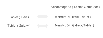 Gli stessi concetti possono essere espressi con il formalismo matematico e la teoria degli insiemi. Ad esempio, è possibile dichiarare la sottocategoria Tablet nella categoria Computer nel seguente modo: Tablet ⊂ Computer. Allo stesso modo è possibile assegnare gli oggetti alla sottocategoria ( sottoinsieme ) utilizzando una relazione di appartenenza iPad ∈ Tablet.